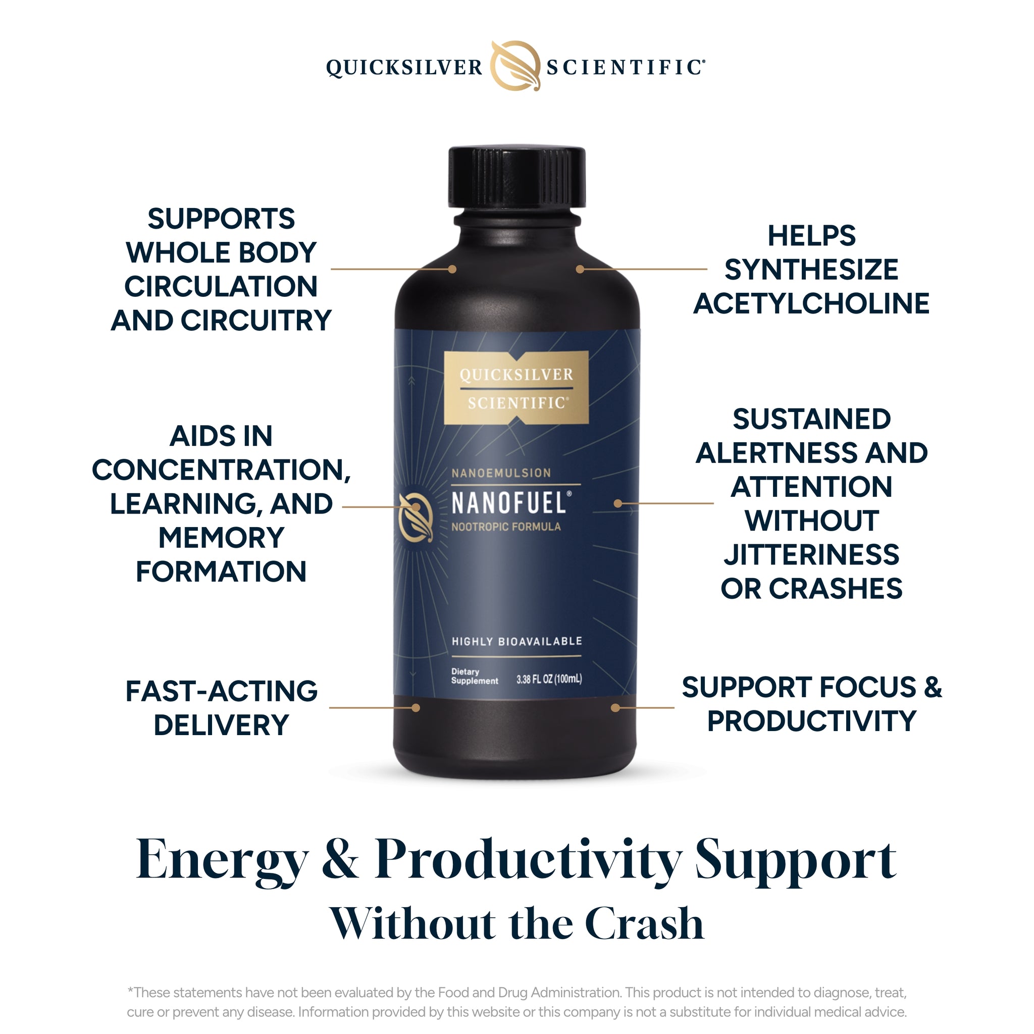 Meet NanoFuel®, a next-generation nootropic designed to elevate your energy, focus, and cognitive performance. This nanoemulsified blend combines time-honored botanicals and cutting-edge nutraceuticals to help you stay sharp, productive, and mentally clear — without the crash.